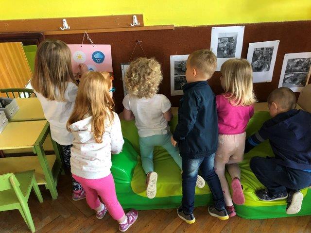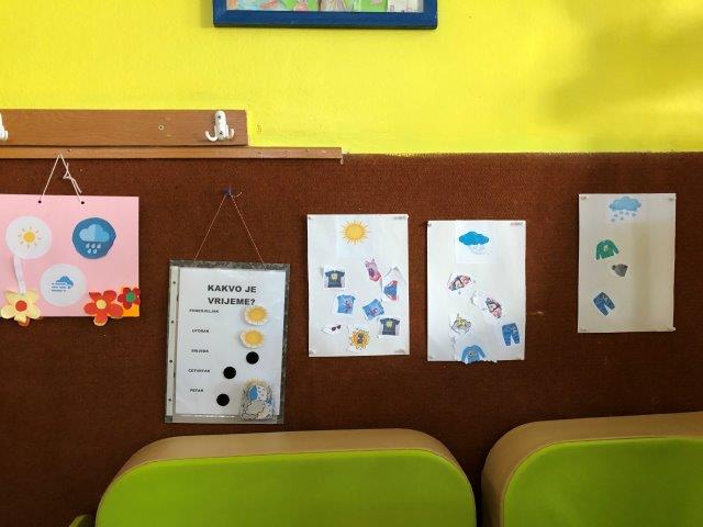 Djeca mlađe skupine Nevena zamijetila su kako je prošlih dana vrijeme bilo promjenjivo te su često kroz prozor promatrala vrijeme i razgovarala o tome. To nas je potaknulo da izradimo kalendar vremena. Tako su djeca svaki dan dolaskom u skupinu pomicala kazaljku na našem kalendaru ovisno o vremenu. Čitali smo i slikovnicu „Što Miffy oblači?“ što je potaknulo djecu na razgovor o tome kako se odijevamo za koju vremensku priliku te na izradu plakata. Interes za kalendar vremena traje svakodnevno, a djeca uživaju dogovarajući se tko će koji dan promijeniti kazaljku na kalendaru.