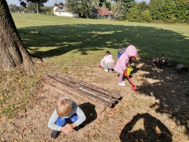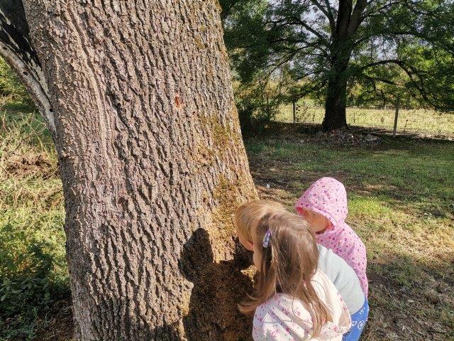 Prilikom boravka na zraku djeca su uočila rupice na stablu. Čekali su i proučavali tko će izaći iz tih rupica. To su bili veliki mravi. Slijedili su njihovo kretanje od stabla prema tlu, gdje su se ponovno skrivali u male iskopane rupice. Djeca su se dogovorila da će mravima u pješčaniku izgraditi veliki dvorac gdje će svaki mrav imati svoju sobu. Rupice koje su izbušili u njihovom novom domu ukrasili su lišćem kojeg su sakupljali ispod stabla.