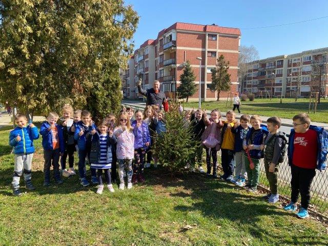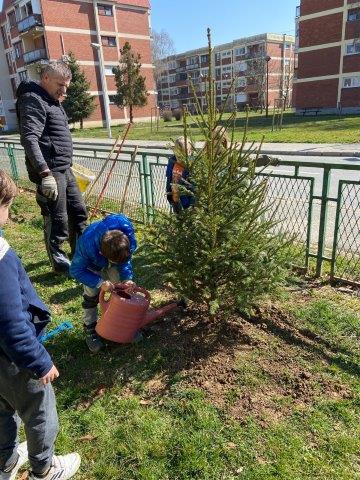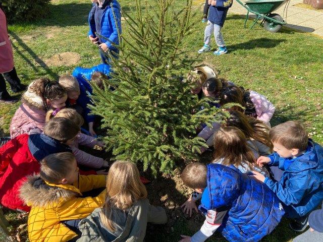 U sklopu projekta "Šuma zajednica biljnih i životinjskih vrsta" djeca i odgojiteljice starije C skupine Maslačka posadili su bor u dvorištu vrtića.