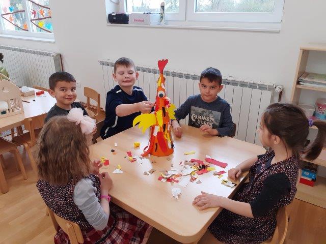 Tijekom šetnje okolicom vrtića djeca su uočila kako su se rode vratile u naše krajeve. Razgovarala su o razlozima njihova odlaska i svoja znanja povezivala s izmjenom godišnjih doba te promjenama u prirodi koja se tada događaju. Konstruirala su gnijezdo koristeći grančice i modelirala rode, ali i njihova jaja od plastelina. Kroz razgovor djeca su izražavala znanja o vrstama životinja koja se liježu iz njih. Njihova pažnja se preusmjerila prema peradi.