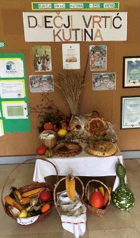 U organizaciji Koordinacijskog odbora Kutina - Grad prijatelj djece, na Trgu dr. Franje Tuđmana održana je izložba povodom Dana kruha i zahvalnosti za plodove zemlje. Na izložbi je sudjelovao i Dječji vrtić Kutina, a nositelji izložbe bili su starija B, C i D skupina objekta Maslačak. Zahvaljujemo roditeljima na sudjelovanju u izložbi te gosp. Dokmaniću, Tominom ocu na svesrdnoj pomoći i prijevozu stvari za izložbu.