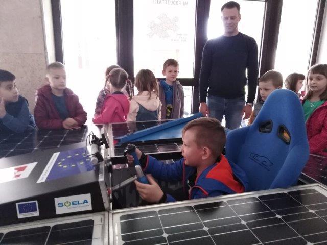 Djeca Starije A skupine podružnice Maslačak, u suradnji s majkom dječaka Jakova Š. posjetila su 3.travnja Tehničku školu u Kutini. Vidjeli su auto na solarni pogon, isprobali kako je u njemu, saznali gdje se može voziti, tko ga vozi, kojom brzinom. U jednom od kabineta vidjeli su kako pomoću printera nastaju „igračke“.U knjižnici škole djeca su bila počašćena grickalicama i sokovima.