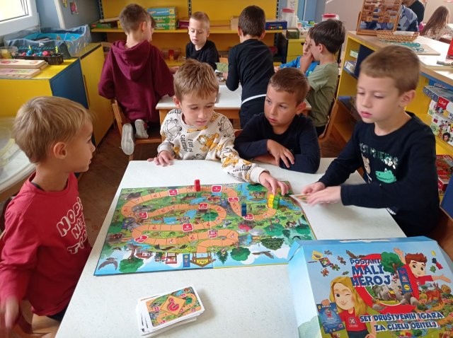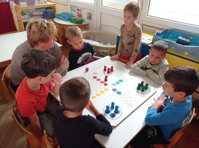 Dijete postaje društvenije, voli igre koje zahtijevaju veći broj djece. Za to su pogodne razne društvene igre:  „Čovječe, ne ljuti se“, „Pogodi tko“, „Spoji niz“, „Mlin“, „Twister“, karte „Uno“, „Crni Petar“, „Magarac“. U tim igrama potiče se  ustrajnost, poštivanje pravila i podnošenje neuspjeha.