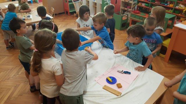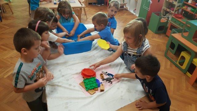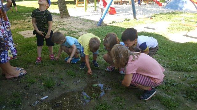 Igra je bila vrlo poticajna te su djeca i tijekom boravka na zraku nastavila igru. Pronašli su lokvicu punu kiše, prikupljali kamenčiće, grančice i češere te su istraživali što će potonuti, a što plivati na površini.