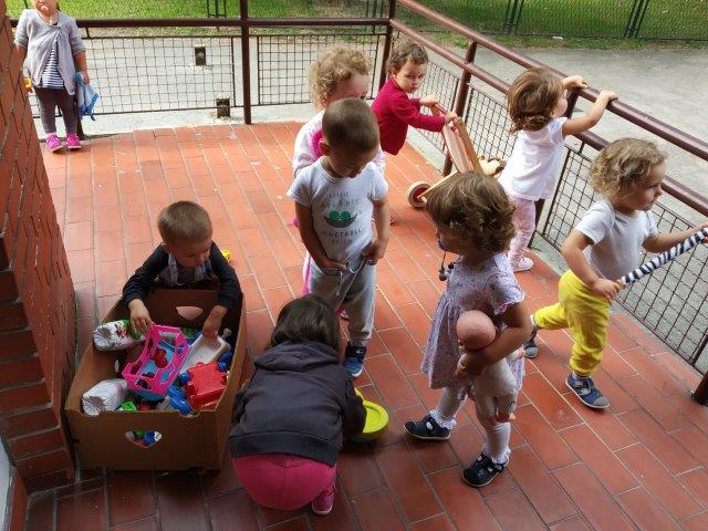 U objekt Bubamare smjestila su se djeca iz objekta Vrapčići sa troje novoupisane djece. Djeca upoznaju prostor nove skupine, prostor terase i sve igre koje su smještene u njima. Troje novoupisane djece prolazi fazu prilagodbe koju im olakšavaju igre i prijatelji koji im nude suradnju u njima, kao i odgojiteljice koje im pružaju utjehu kada to traže. Djeca se raduju izlasku na terasu gdje koriste guralice i vozila za vuču te p.n.m igre.