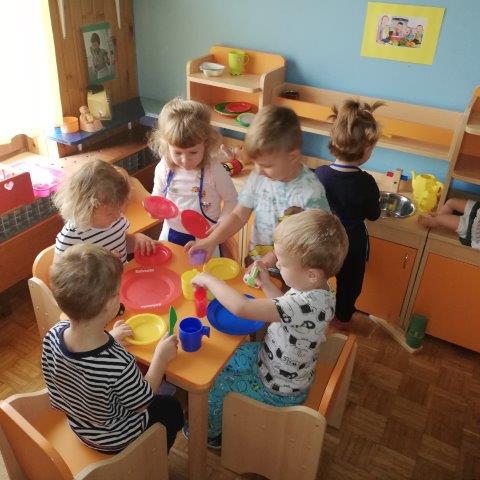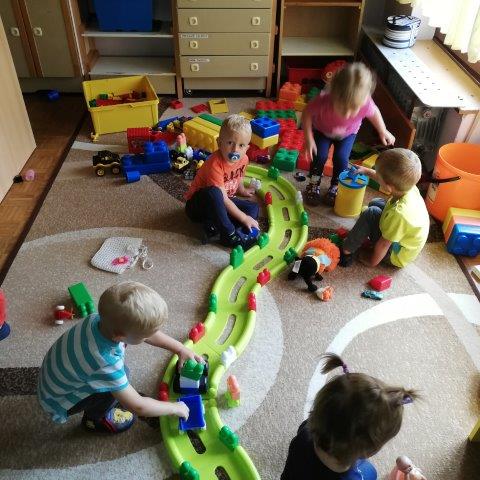 U našoj skupini djeca svakodnevno radoznalo istražuju novi prostor i igračke. Najveći interes djeca su pokazala za imitativne igre u obiteljskom kutiću (kuhamo,poslužujemo,hranimo lutkice i prijatelje...) te kutiću građenja (gradimo u vis i niz, ceste...)