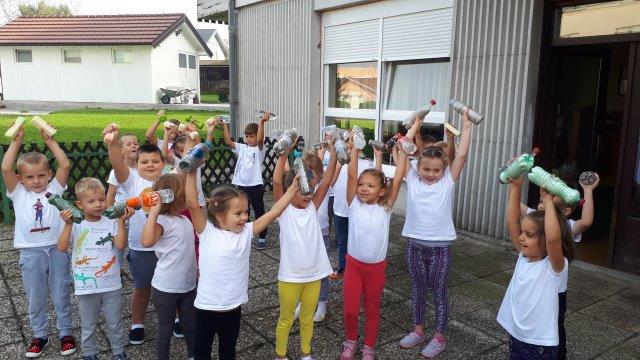 U suradnji s roditeljima prikupili smo male plastične bočice te od njih izradili bučice za tjelovježbu. Osobito su im se svidjele igre vijačama za preskakanje kao i vježbe bučicama i loptama.