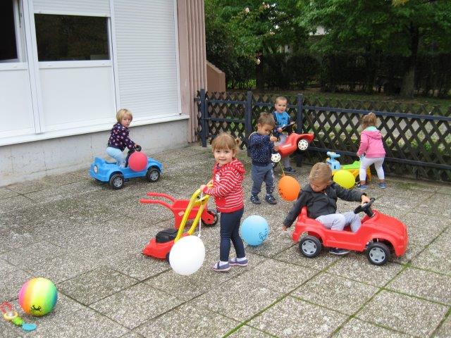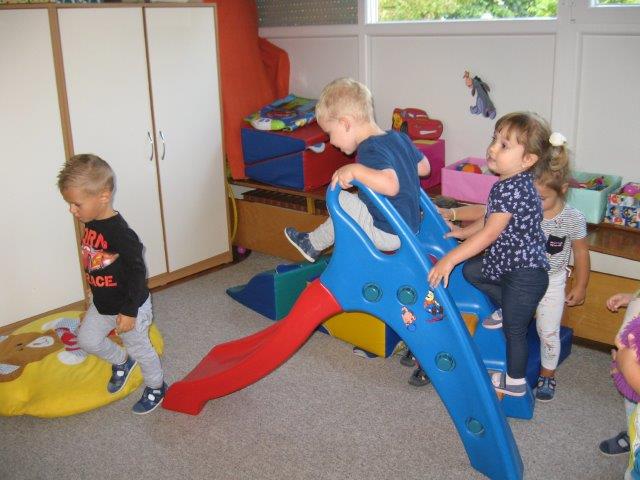 S novom pedagoškom godinom,svakodnevno koristimo lijepo vrijeme pa vozimo razne tricikle, autiće i guralice po terasi i igramo se s balonima. Spuštanje niz tobogan je omiljena igra kao i naticanje raznih naticaljki u boji.