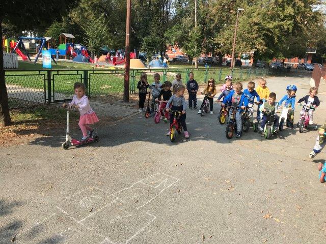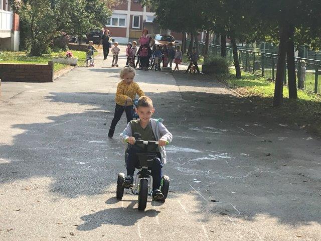 Europski tjedan mobilnosti u srednjoj A skupini 23.9.2020. Djeca Srednje A skupine objekta Maslačak vožnjom bližom okolicom vrtića na svojim romobilima i biciklima obilježili su Dan bez automobila, 22.09. Kristina Vidović i Željka Dumbović Čajkulić, odgojiteljice srednje A skupine Maslačka