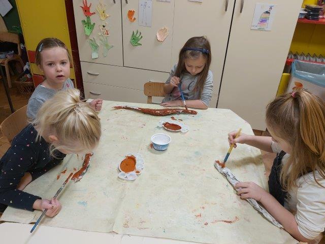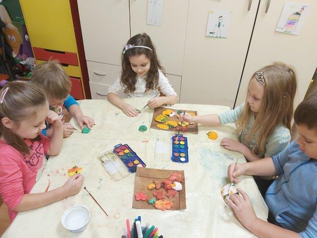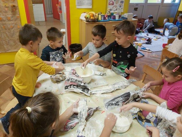 Majka Luke Ž .izradila je za našu skupinu jesenske figure od gipsa koje su djeca ukrasila i obojala temperom. U razgovoru s djecom došli smo na ideju izraditi stablo na koje ćemo objesiti jesenske ukrase. Sva djeca u skupini rado su sudjelovala u izradi stabla postupkom kaširanja. Djecu je posebno razveselio postupak nanošenja smjese za kaširanje rukama i mogućnost da se mogu uprljati, a Josip je izjavio: „Teta ovo je kao da se igramo blatom.“. Nakon što su iskaširali stablo i grane, djeca su u nekoliko navrata odlazila do prozora provjeriti kako napreduje sušenje, a nakon sušenja grane je bilo potrebno obojati temperom. Nakon što smo pričvrstili stablo na naš pano u prostoru sobe dnevnog boravka, djeca su sa zadovoljstvom stablo ukrasili ukrasima od gipsa. Aktivnost je trajala tijekom cijelog tjedna, a u aktivnost su se uključivala sva djeca u skupini. Svako je dijete prema vlastitom interesu odabralo segment aktivnosti u kojem će sudjelovati.