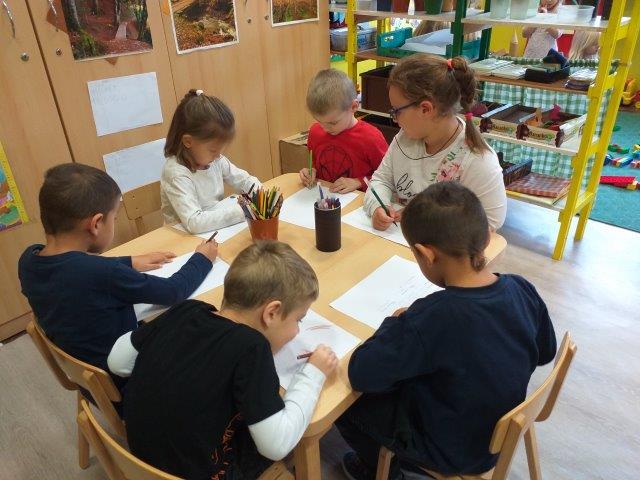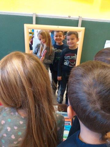 U kutiću likovnog izražavanja i stvaranja crtala su olovkama ili modelirala plastelinom doživljaj svog odraza u ogledalu. Za veselo raspoloženje u skupini igrala su glazbenu igru Glava, ramena, koljena koja je izazvala veselje mijenjanjem tempa izvođenja. Pogotovo je smiješno i djeci bilo privlačno kada netko, a pogotovo odgojiteljica pogriješi u pokazivanju dijela tijela.