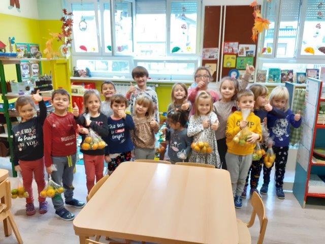 Donacija mandarina 17.11.2020. U Dječji vrtić Kutina pristigla je hvale vrijedna donacija. Naime, HVIDRA Metković donirala je Dječjem vrtiću Kutina više od 300 kg mandarina. Djeca su uživala u mandarinama, a ostatak su spakirali i ponijeli svojim kućama.