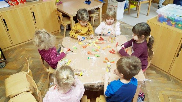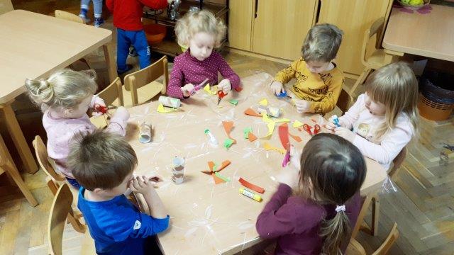 Za igru i istraživanje djeci su ponuđeni papiri u boji, kartonski tuljci, ljepilo, škarice, grančice i plastelin te smo ih poticale na istraživanje što sve mogu napraviti od ponuđenog.
