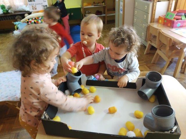 Djeca svakodnevno koriste ove igre, dolaze istraživanjem do novih zaključaka ..tako je jedna starija djevojčica u skupini primjetila kada spušta kinder jaja u bazenčić da je to isto kao kada vježbamo "Kukuriku- Hu-hu-huu"(igra Dan- noć).