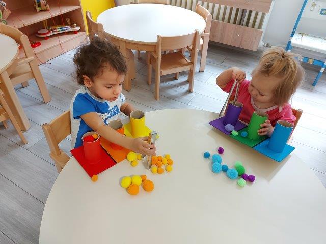 Ovakvim aktivnostima potičemo uočavanje i razlikovanje boja, no osim toga razvijamo i finu motoriku i manualnu spretnost (pincetni hvat ),koordinaciju oko-ruka, pažnju, upornost i koncentraciju.