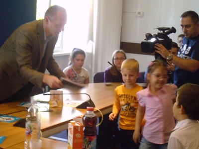 Tradicionalnom susretu s gradonačelnikom Kutine u Gradskoj vijećnici, 5.10.2015.g., prisustvovalo je i dvoje djece našeg vrtića. Dora Pranić i Marin Pešut, polaznici Starije B skupine podružnice Neven uručili su gradonačelniku album s dječjim crtežima te prigodnim izjavama i željama svome gradu.