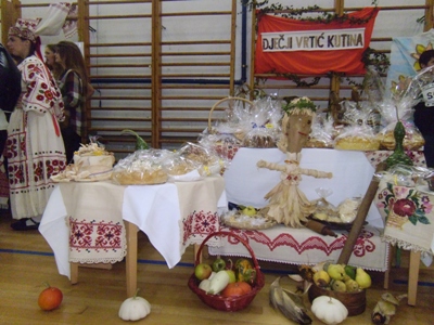 DANI KRUHA I ZAHVALE ZA PLODOVE ZEMLJE 8.10.2015. DANI KRUHA I ZAHVALE ZA PLODOVE ZEMLJE 8.10.2015. Na tradicionalnoj manifestaciji povodom Dana kruha i zahvale za plodove zemlje,svojim štandom predstavio se i naš vrtić. Na vrtićkom štandu našla se bogata ponuda domaćih pekarskih proizvoda koje su izradile vrijedne majke i bake djece svih vrtićkih skupina. Vrtić je osvojio drugo mjesto koje dijeli s OŠ Stjepan Kefelja. Prilog pripremila: Dunja Vidiček