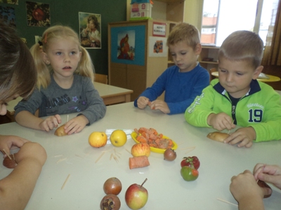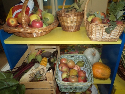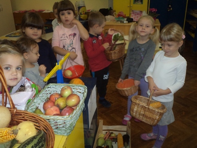 IGRE PLODOVIMA JESENI 10.10.2015. IGRE PLODOVIMA JESENI 9.10.2015. U suradnji s roditeljima, djeca i odgojiteljice srednje „A“ skupine podružnice Neven sakupila su mnoštvo raznovrsnih jesenskih plodova. Sve prikupljeno iskoristili su za maštovite igre pretvaranja, istraživanja te likovno stvaralaštvo. Sa svojim odgojiteljicama osmislili su igre tržnice, kuhanja zimnice, pekli su se kolači...sokom od cikle slikalo se i bojalo, a krumpiri, mrkve, paprike i ostalo povrće poslužilo je za neobične likovne radove otiskivanja raznih oblika. Svim osjetilima, djeca srednje „A“ skupine doživjela su bogatsvo jeseni. Odgojiteljice: Renata Brozović i Vlasta Masinović