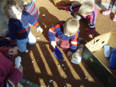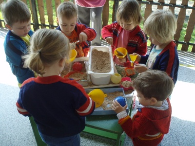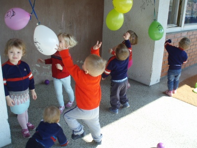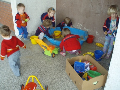 IGRE NA TERASI 17.4.2016. IGRE NA TERASI 14.4.2016. Na terasi podružnice Neven odgojiteljice II. jaslica nude razne poticaje za igre tijekom boravka na zraku. Među materijalima koji pobuđuju dječji interes za istraživanjem i kretanjem su piljevina, pijesak, cvjetovi, baloni te igračke na vuču izrađene od raznih neoblikovanih materijala. Raznovrsna ponuda motivira djecu na kretanje i istraživanje i zadovoljava njihovu potrebu da dio dnevnih aktivnosti provedu na zraku. Odgojiteljice: Ana Carek i Nada Keco