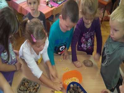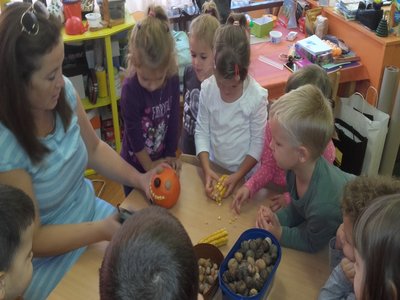 Ovim stihovima jesen je došla i u našu skupinu. U suradnji s roditeljima prikupili smo mnoštvo jesenskih plodova i plodina. Tijekom proteklih tjedana koristili smo ih u matematičkim, stolno-manipulativnim i kreativno-likovnim aktivnostima. Jedna od njih je bila i izrada jesenskih lutkica od tikvi, oraha, lješnjaka, kukuruza, graha,koštica od bundeve i mnogo drugog zrnja. Djeca su svoju maštu prenijela na lutkice koje smo izradili te ih koristimo u našem scenskom kutiću. Priroda nam daje puno materijala koje možemo koristiti za razvoj djeteta na svim područjima razvoja. Uživamo s prirodom….probajte i vi!