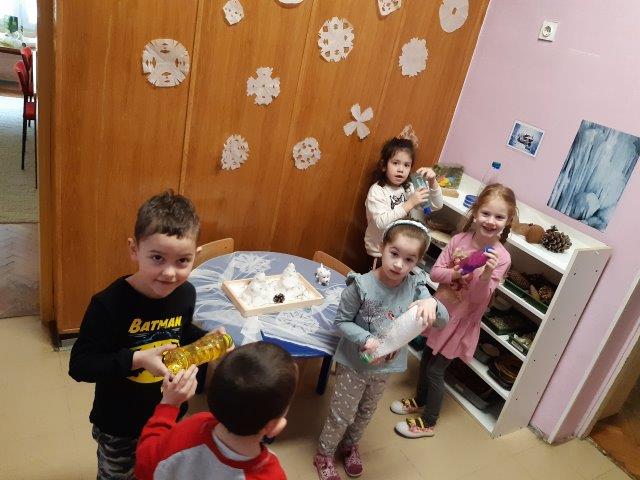 Potaknuti bjelinom u okolini, tijekom tjedna djeca i odgojiteljice uredili su zimski kutić, te proveli zanimljive aktivnosti vezane uz temu zime, kojima se kod djece poticao cjelokupan razvoj.