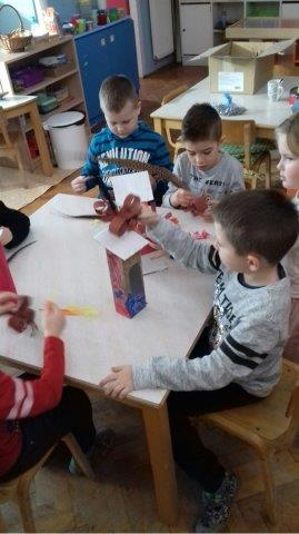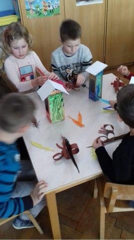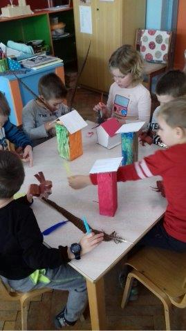 Od otpadnog neoblikovanog materijala izradili su kućice za ptice, razne ptičice , gnijezdo te postavljali na “drvo” u našoj skupini. Također su sudjelovali u likovnom izražavanju na teme; “Najbogatiji vrabac na svijetu”, “Razbojnik sa žutom pjegom” i “Slavuj” prema istoimenim pričama.