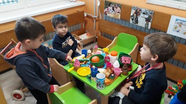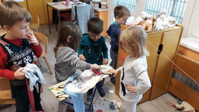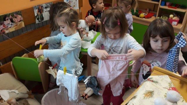 Djeca mlađe «A» skupine objekta Maslačak u proteklom su razdoblju rado se uživljavala u razne uloge u igrama pretvaranja. U obiteljskom kutiću i kutiću kuhinje organizirali su igre kuhanja ručka, pečenja kolača, proslave rođendana, pranja i sušenja odjeće te peglanja. Brigu o lutkama su iskazivali prematanjem, preodijevanjem i hranjenjem. Potaknuti dječjim interesom oformili smo kutić malih majstora gdje su se djeca uživljavala u uloge majstora popravljajući igračke i namještaj u sobi dnevnog boravka. Kroz igre pretvaranja djeca stječu navike u zajedničkoj igri: dijeljenje igračaka, čekanje na red, dogovor oko uloga, suradnju.