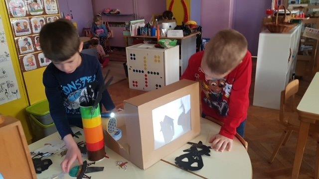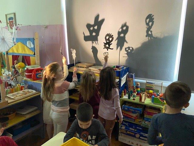 Djeca starije B skupine Maslačka u svojoj skupini aktivno su sudjelovala u izradi kazališta sjena. Od kartona , štapića i papira za pečenje izradili su paravan i lutke na štapiću. U sobi dnevnog boravka zamračili smo prostor i svjetiljkama osvijetlili prozorčić na paravanu. Igra je počela. Ovom aktivnosti djecu smo poticali na razvoj govora, koncentracije, mašte, simboličke igre, uživljavanje u uloge, samopouzdanje i pozitivnu sliku o sebi.