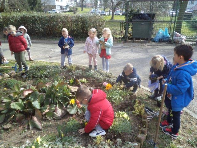 Zatim smo u suradnji s roditeljima dogovorili donošenje sadnica i lukovica cvijeća prema mogućnostima. Iste smo zajedno posadili u našem cvjetnjaku pored vrtića. Djeca su pažljivo slijedila upute odgojiteljica i brižno ih posadila u zemlju. Sada ćemo pratiti njihov rast i napredak!