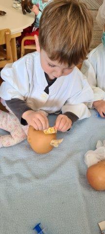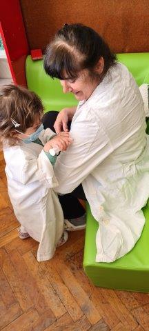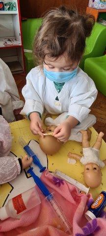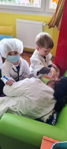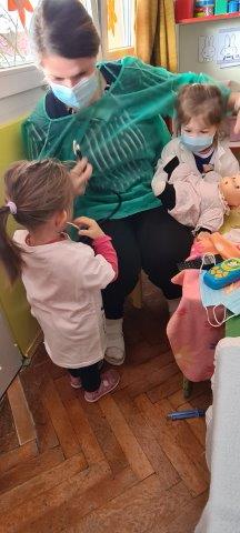 U skupini smo oformili kutić liječnika. Ovim aktivnostima djeca su potaknuta na pažnju, koncentraciju i samostalno zaključivanje. Ujedno smo obogatili spoznaju o vlastitom tijelu (prepoznavanje, pokazivanje i imenovanje dijelova tijela). U aktivnost se uključila većina djece te je svatko na svoj način pridonio maštovitoj i kreativnoj igri kroz koju djeca uče o suradnji, dogovoru i brizi o vlastitom tijelu i higijenskim navikama.