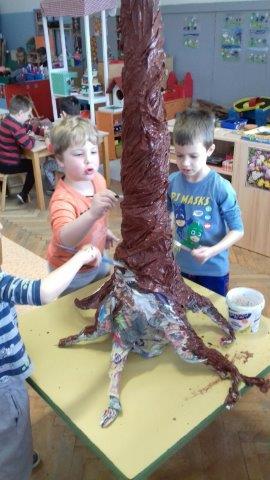 Uz dječje enciklopedije i slikovne materijale djeca su stjecala znanja o svojstvima stabla, njegovim dijelovima i njegovoj važnosti za sva živa bića. Postepeno smo izrađivali dioramu “Stablo” s ciljem da učimo kroz vlastitu aktivnost i iskustvo.