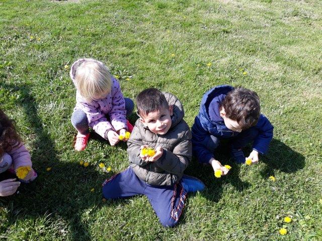 Igramo se i na livadi u potrazi za tratinčicama, maslačcima, malim insektima i drugim bubicama. Svoja iskustva djeca dopunjavaju u sobi slušajući priče , listajući enciklopedije i prenoseći svoje doživljaje na papir.