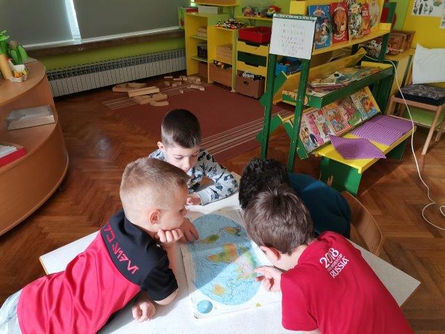 Upoznali su kako planeta Zemlja izgleda kroz globus i atlas kao i imena kontinenata, oceana. Crtali su na papiru svoju planetu Zemlju.