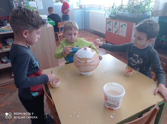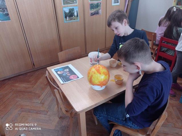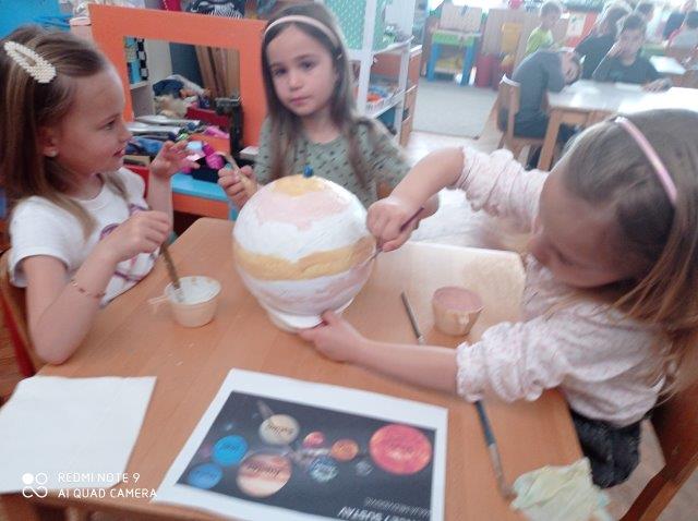 Povodom obilježavanja dana planeta Zemlje djeca su pokazala interes za stjecanjem znanja o svemiru. Odlučili smo izraditi model Sunčevog sustava koji smo postavili u prostor sobe dnevnog boravka. Sva su djeca sudjelovala u pripremi materijala, donosili su enciklopedije od kuće koje smo čitali i prema njima radili planete sunčevog sustava. Stjecali su znanja o udaljenosti planeta od sunca, osnovne karakteristike svakog planeta i nekih njihovih mjeseci. Posebno su ih zanimale crne rupe i njihovo nastajanje. Upoznali su nove pojmove; galaksija, Mliječna staza, imena planeta, astronaut, zviježđa, sateliti i dr.