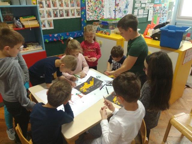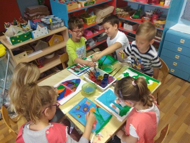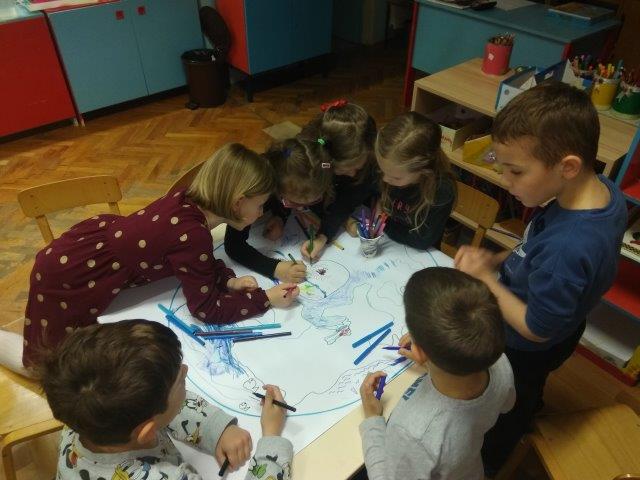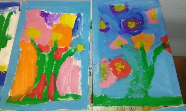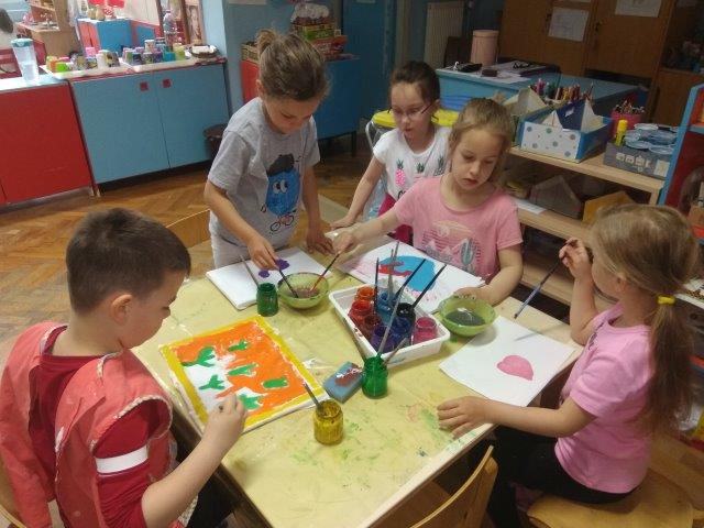 Tijekom prošlog mjeseca poticale smo djecu na igre i aktivnosti raznovrsnog izražavanja i stvaranja: govorne igre, scenske improvizacije, glazbene, a osobito likovne aktivnosti. Djeca su modelirala plastelinom i glinom i izrađivala kukce i cvijeće od otpadnog papira i kartonskih valjaka. Nakon obilaska poučne staze „Turski stol“ nastao je zajednički rad – karta staze koja će nam, prema izjavama djece, pomoći u još jednom obilasku. Uz publikacije i slikovne materijale upoznala su umjetnička djela poznatih slikara (P.Picasso, V. Van Gogh, C. Monet, S. Raškaj, I. Rabuzin) i različite način njihovog izražavanja. Potičući ih na izražavanje i stvaranje došla su do izražaja dječja osobna opažanja, njihove zamisli, kreativnost i uživljavanje u lik slikara. Tako su nastala likovna djela na papiru, staklu i platnu.