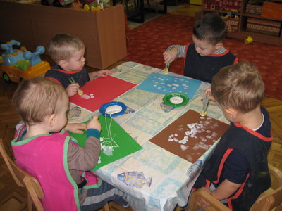 Djeca mješovite jasličke skupine „Košuta“ pokazuju interes za igru s likovnim sredstvima i materijalima, posebno za temperu. Uz osnovno slikanje prstićima i kistom, djeci smo ponudile razna neobična sredstva za ostavljanje tragova. Djeca su slikala sa komadićima spužve na kvačicama, bebi štapićima, izrađivala otiske s plutenim čepovima, narezanim rolicama toalet papira, balonima punjenim vodom, donjim dijelom plastičnih bočica.