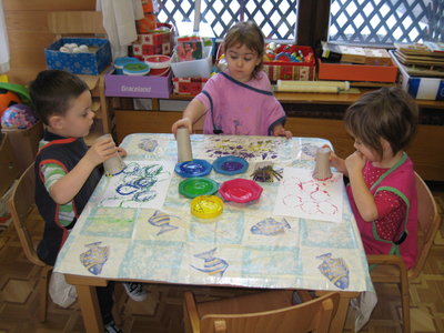 Djeca isprobavaju i istražuju kakvi će tragovi od boje ostati.