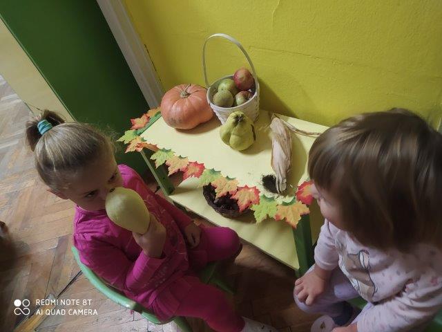 Promjenama u prirodi radovala su se i djeca naše skupine. Povodom dolaska godišnjeg doba – jeseni oformili smo u skupini i centar jeseni koji su nam roditelji i djeca pomogli opremiti raznim prirodninama koje su pronašli tijekom zajedničkih šetnji i boravka u prirodi. Djeca su kroz razgovor dolazila i do spoznaja koje sve životinje često viđamo u jesen pa smo povodom toga izvodili i nekoliko kratkih igrokaza uz pomoć  štapnih lutki životinja, a djeca su poticana da i sama sudjeluju ili osmisle neki svoj dio u igrokazima te se na taj način izraze. Djeci se najviše dojmio jež pa s aktivnostima vezanih uz njega nastavljamo i u idućem periodu.