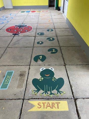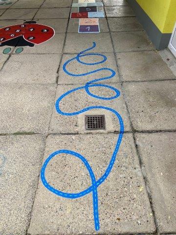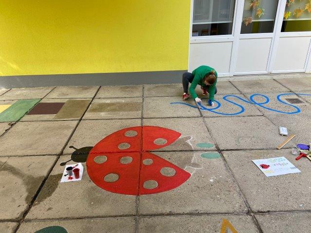 Kako bi boravak na zraku bio što osmišljeniji, odgojiteljice Elena Vasik i Saša Habek, u suradnji s Liamovom mamom, gđom Elom Lušičić, i Pablovom mamom, gđom Danijelom Kurtz, oslikale su prostor terase te napravile interaktivnu stazu. Kroz igru na takvoj stazi djeca će poboljšati motoričke sposobnosti, a kroz brojanje usvojiti predmatematičke vještine.