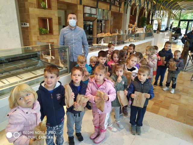 Srednja C skupina objekta Maslačak je u utorak, 12.10. posjetila novootvorenu pekaru "Vikend". Ispred pekare nas je dočekao g. Bernard Prenkaj, vlasnik pekare te nam zaželio srdačnu dobrodošlicu. Ušli smo kroz prva vrata pekare kako bi djeca mogla vidjeti i doživjeti put "od zrna do kruha".
