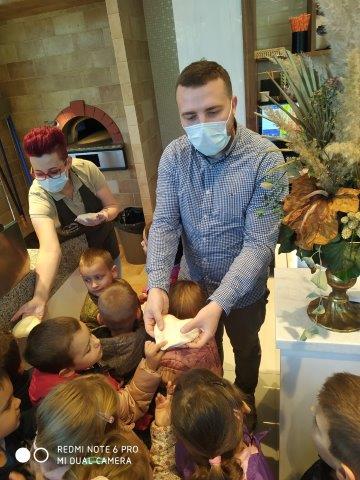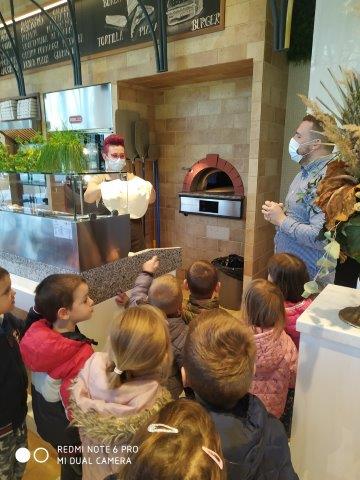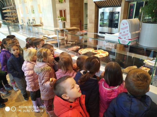 Najveće oduševljenje kod djece izazvala je gđa Stella koja je majstorica za izradu pizze. Za zanimanjem su gledali kako razvlači tijesto, stavlja potrebne sastojke i velikom "lopatom" (loparom) ju stavlja u peć. Za tri minute pizza je bila gotova, a pekara još finije mirisala!