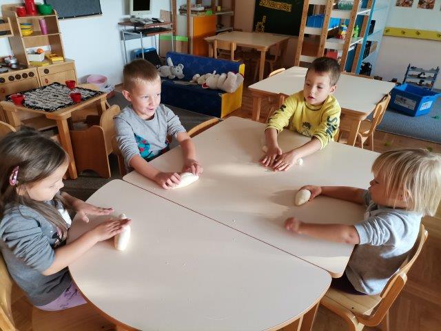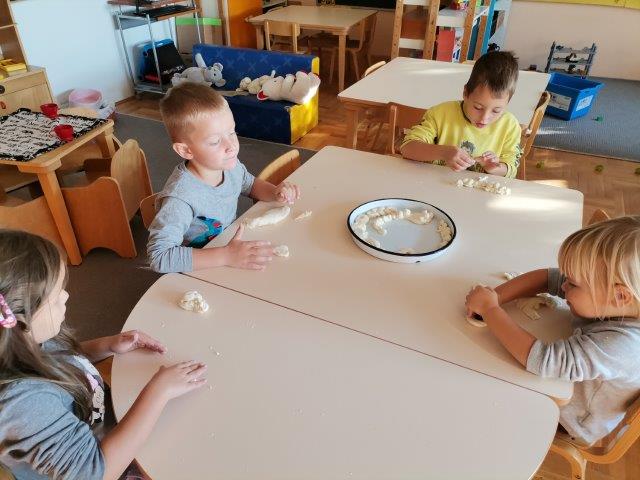 Priča "Djedova pogača" potaknula je djecu da i sama zamijese i naprave svoje kruščiće,  koje smo  poslije izložili.