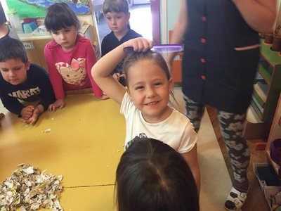 Djeca srednje „B“ skupine objekta Neven vrlo rado borave u istraživačkom centru, koji su oformili u svojoj sobi dnevnog boravka. Veliki interes djece pobudila je nova istraživačka aktivnost u kojoj su djeca istraživala elektricitet pomoću češljeva i novinskog papira. Prolazeći češljem kroz kosu, a zatim ga približavajući novinskom papiru, uočili su da češalj privlači papir. Ovu zabavnu aktivnost smo proširili nudeći djeci napuhane balone, koje smo trljali o glavu te su oni, kada smo ih prestali držati, ostali stajati na glavi.