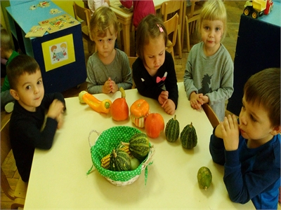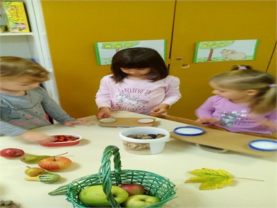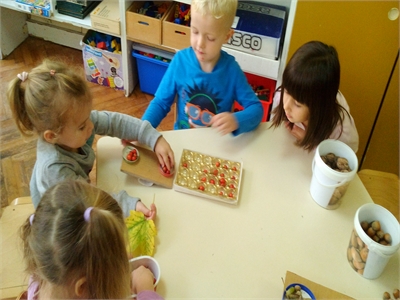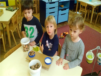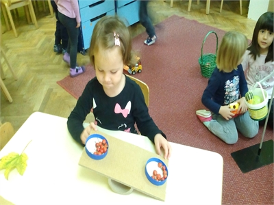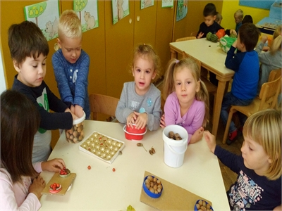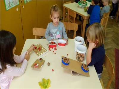 U suradnji s roditeljima oformili smo jesenski kutić u našoj sobi dnevnog boravka, u kojemu su djeca mogla uočiti različite jesenske plodove, a nakon što smo ih dobro istražili iskoristili smo ih za brojanje do 10, uspoređivanje - što je veće, a što manje, i vaganje...