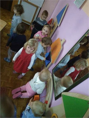 Kroz suze djeca su promatrala svijet oko sebe, pronalazili zanimljive igračke i uključivala se u razne igre. Vježbali su na poligonima, pokušavali savladati penjanje i spuštanje na sobnom poligonu, slagali razne kocke, kuhali u kutiću kuhinje i hranili lutke. Na terasi usavršavali su hodanje uz igračke na vuču i guranje. Uz glazbu s CD-a kretali se u ritmu. Djeca rado slušaju odgojiteljice dok im pjevaju pjesmice i izgovaraju brojalice. Prepoznaju likove listajući slikovnice i zainteresirani su za priče.