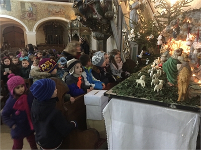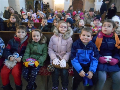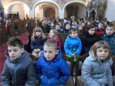 Danas su djeca starije "A" i "B" skupine objekta Maslačak i Neven bila u posjeti crkve Sv. Marije Snježne u Kutini. Toplu dobrodošlicu uputio im je đakon Hrvoje Zovko ,koji je djeci ispričao priču o Isusovom rođenju i pozvao ih da pogledaju jaslice. Promotrili su i ostale dijelove unutrašnjosti crkve.