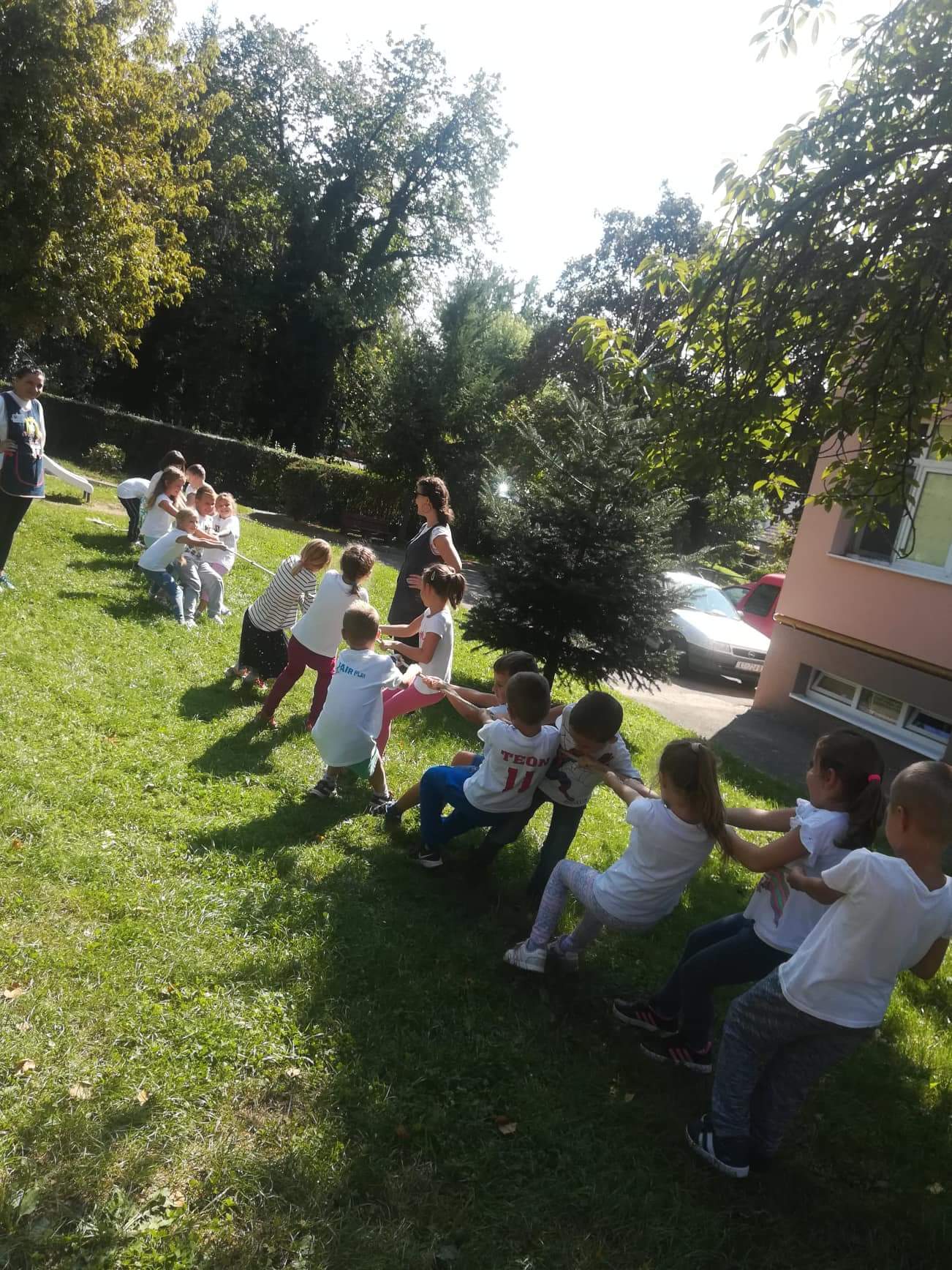 U ponedjeljak 10.09.2018. g.u našoj skupini obilježili smo Olimpijski dan. Zajedno sa prijateljima i odgojiteljicama starije „B“ skupine organizirali smo razne natjecateljske igre kao npr. potezanje užeta, trčanje do cilja, igrali smo pokretne igre „Vjetar“, „Lavica“ te igrali nogomet jedni protiv drugih. Kroz cijeli tjedan provodili smo jutarnju tjelovježbu, igrali razne sportske igre, crtali sebe kako vježbamo te napravili album sportaša. Cijeli tjedan protekao je u sportskom duhu..