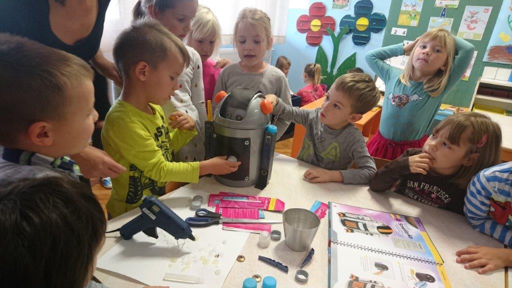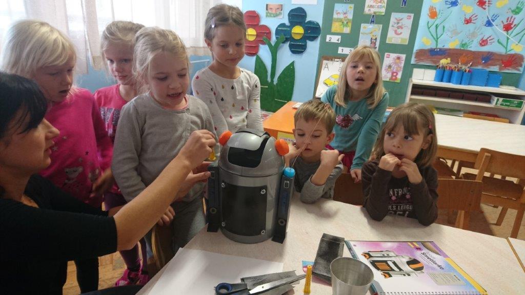 Našu skupinu posjetila je Ivana Pavlović, Martinova mama. Od plastičnog koša za smeće, plastičnih čepova, matica koje je uzela iz tatinog alata i drugih sitnica izradila je robota. Djeca su robotu dala ime Smješko te su se veselili što će u našoj skupini biti netko tko će "jesti" smeće.