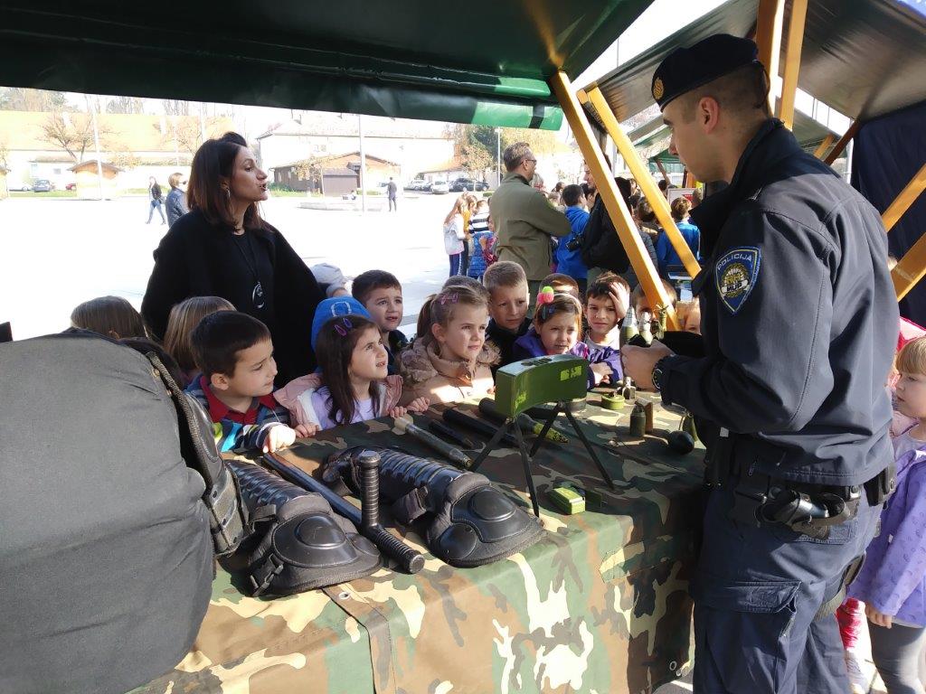 Djeca su boravila u policijskom autu i vozilu Granične policije te na motoru Prometne policije. Na štandovima su imali prilike vidjeti oružja i mine. Razgovarali su o sigurnosti u prometu s prometnim policajcima i djelatnicima HAK-a.