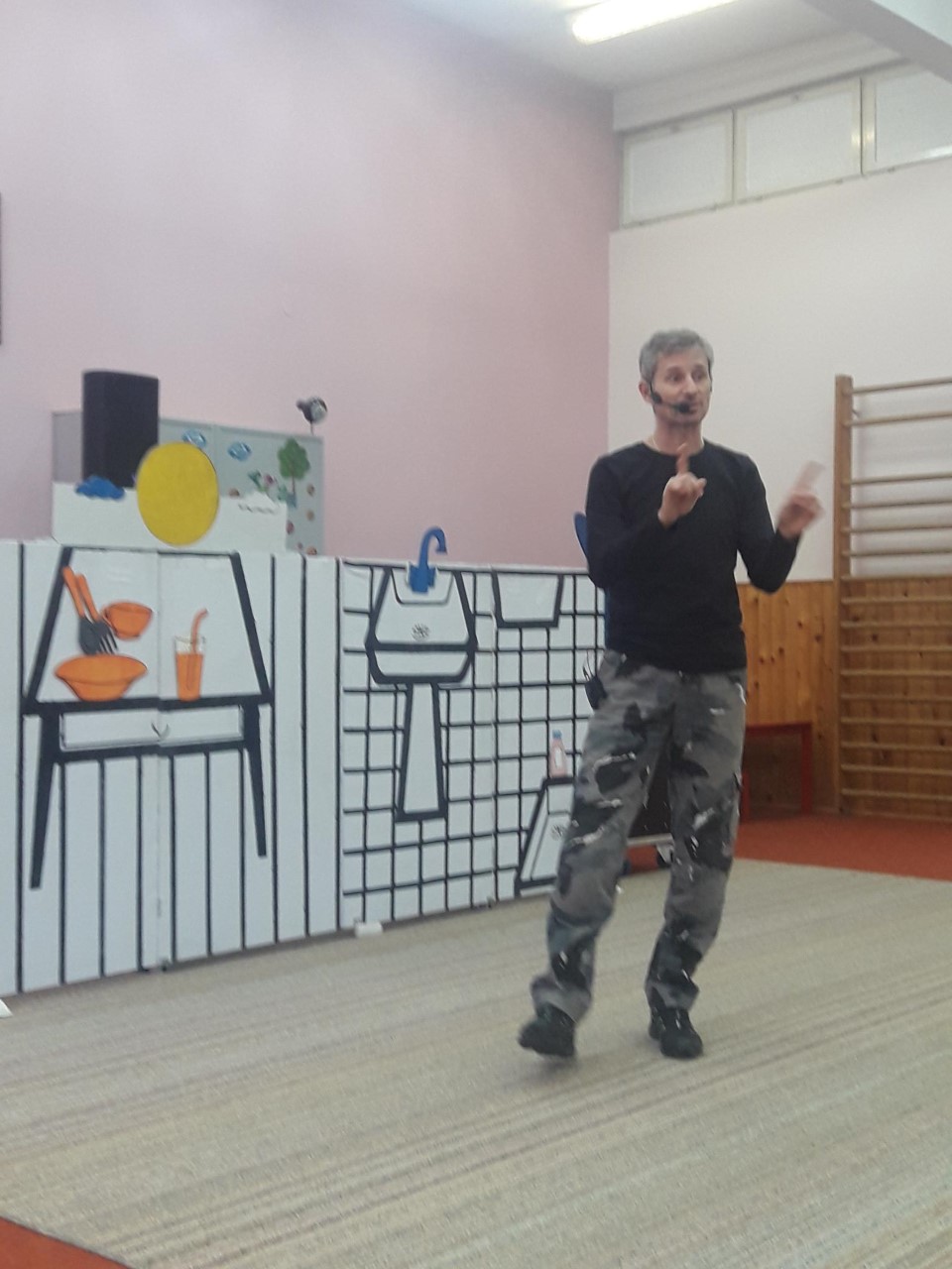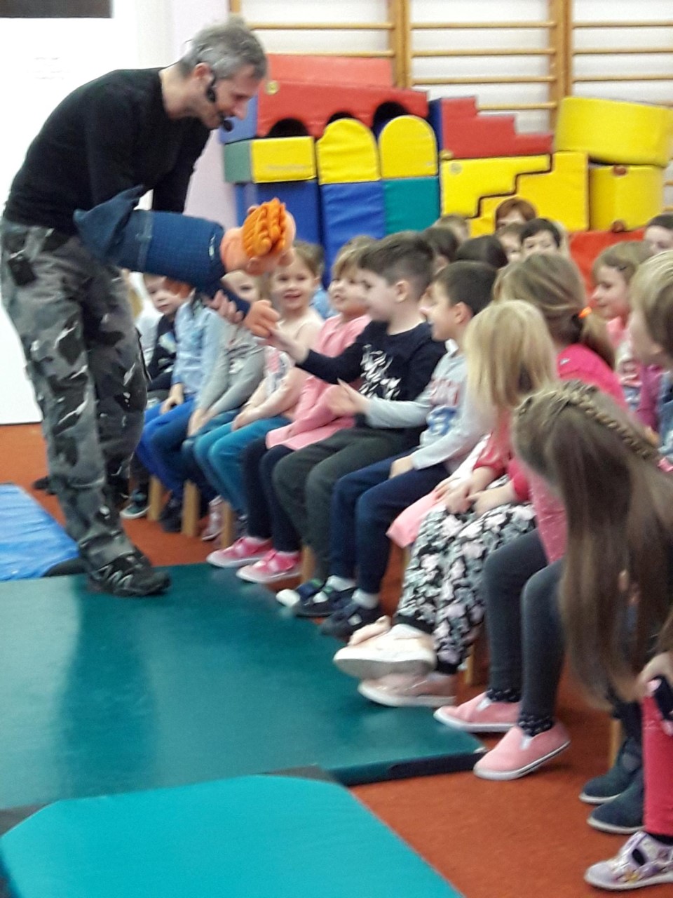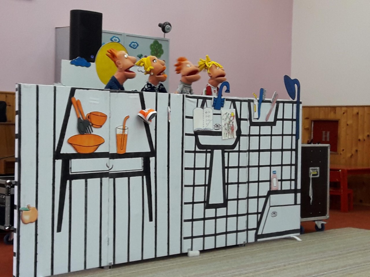 Djeca starije A i B skupine Nevena, starije skupine Košute, srednje C, starije A, B, C i  mješovite skupine Maslačka,  Tratinčice, Pčelice i Leptirića te sve skupine predškole pogledali su lutkarski mjuzikl pod nazivom "Složna obitelj" u izvedbi Produkcije Z iz Splita.